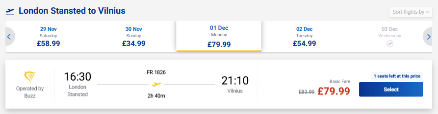 24 lapkričio – 1 gruodžio €193 (į priekį tiesiogiai, atgal su persėdimu)