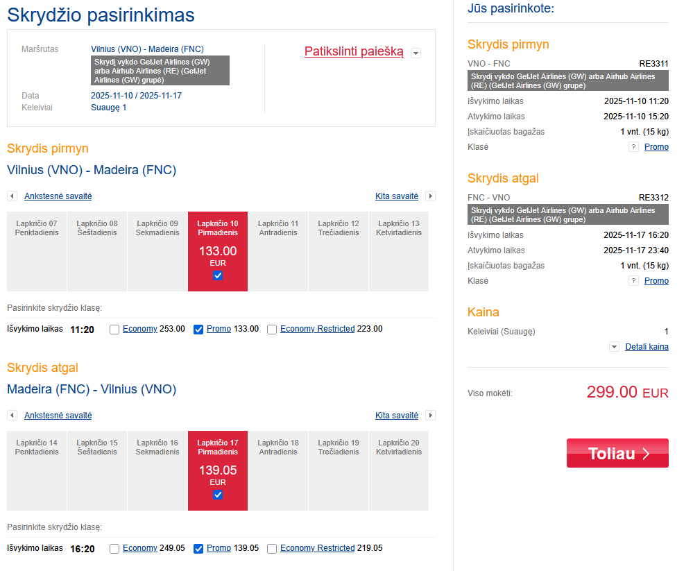 Pigūs skrydžiai į Madeiros salą iš Vilniaus ir atgal.
