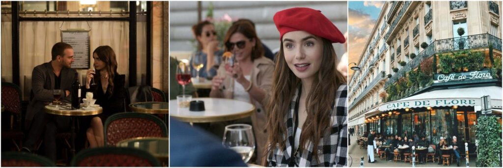 Ši istorine kavos vieta žymi Paryžiaus Saint-Germain rajono dvasią. Emily čia dažnai lankosi susitikimams su draugėmis, pietums ar trumpai kavos pertraukėlei. Scenos perteikia jos kasdienybę ir socialinį gyvenimą Paryžiuje.