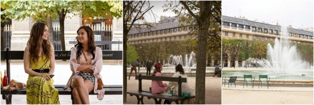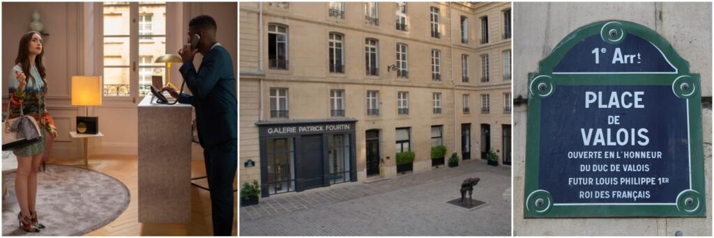 Čia Emily dirba marketingo agentūroje „Savoir“. Seriale matome scenas, kai ji susitinka su klientais, rengia kampanijas ir įsitraukia į verslo pasaulį. Aikštė supa elegantiškos galerijos ir sodai, kurie seriale suteikia autentišką Paryžiaus biuro atmosferą.