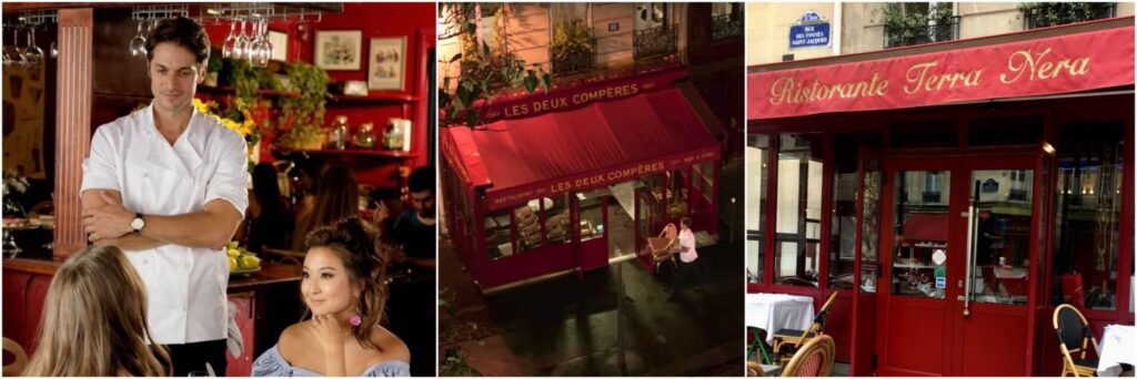 Gabriel restoranas – daug kartų rodoma vieta, kur vystosi Emily ir Gabriel santykiai. Serialo scenoje restoranas atskleidžia jų tarpusavio chemiją, romantiką ir Paryžiaus gurmanišką gyvenimo stilių.