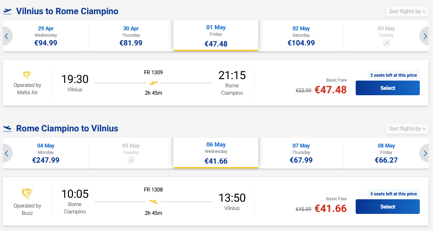 Pigūs skrydžiai į Romą, Italiją tiesiogiai iš Vilniaus ir atgal su „Ryanair“ oro linijomis.