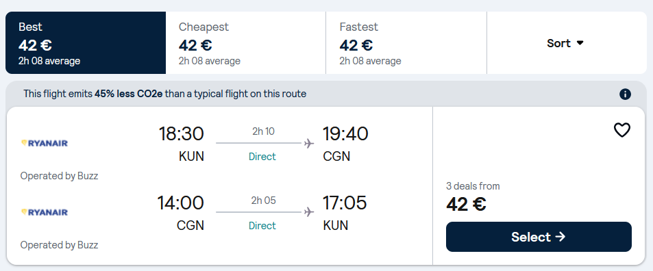 Ilgojo savaitgalio skrydžiai į Kelną, Vokietiją tiesiogiai iš Kauno ir atgal su „Ryanair“ oro linijomis.