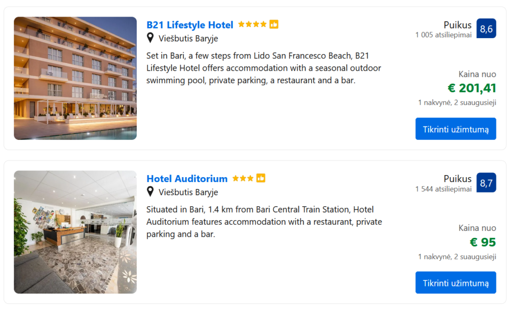 Sprendžiant klausimą kur apsistoti Baryje, rekomenduojamos kelios strategijos:
