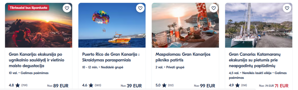 Gran Kanarija išsiskiria savo įvairove, klimatu ir patogumais keliautojams. Čia galima suderinti paplūdimių poilsį, aktyvias pramogas, kultūrines patirtis ir gastronominius atradimus. Sala tinka tiek trumpoms, tiek ilgoms atostogoms bet kuriuo metų laiku.