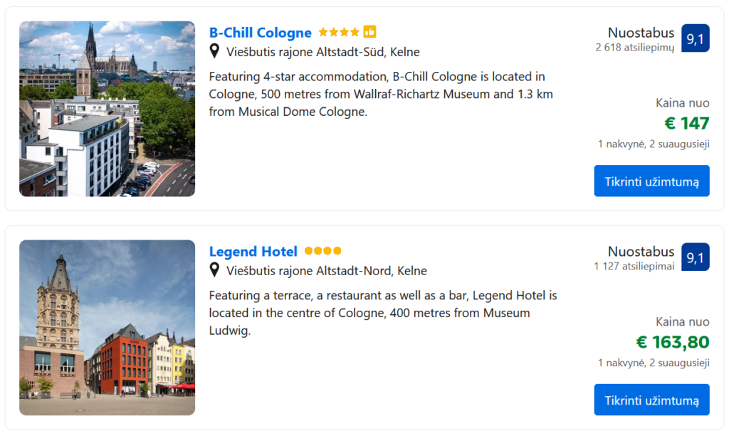 Planuojant kelionę ir svarstant kur apsistoti Kelne, verta rinktis vietą pagal kelionės tikslą ir trukmę.
