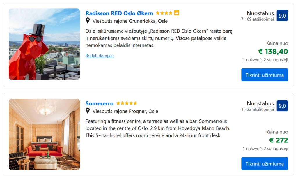 Taip, tačiau kainas galima kontroliuoti pasirenkant apartamentus, viešojo transporto dienos bilietus ir planuojant maitinimą iš anksto. Biudžeto planavimas padeda efektyviau organizuoti kelionę ir daugiau dėmesio skirti tam, ką veikti Osle, o ne papildomoms išlaidoms.