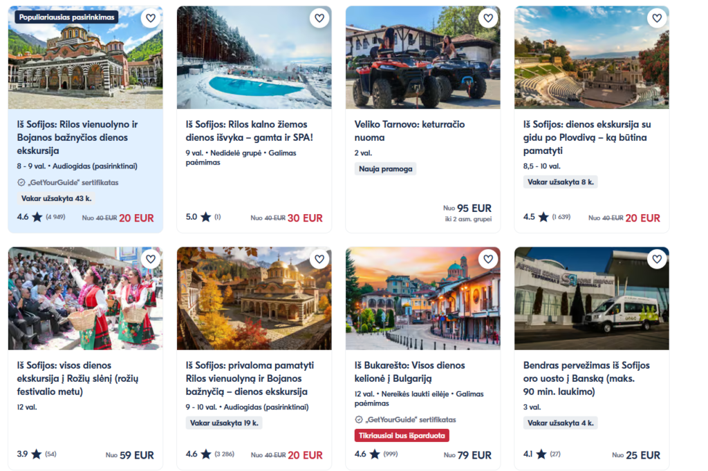 Bulgarija – tai šalis, kuri keliautojus vilioja šiltais Juodosios jūros paplūdimiais, turtinga istorija, kalnų peizažais ir autentiška kultūra. Čia galima suderinti poilsį, pažintines keliones ir aktyvias pramogas. Bulgarija tinka tiek šeimų atostogoms, tiek romantiškoms išvykoms ar savarankiškoms kelionėms.