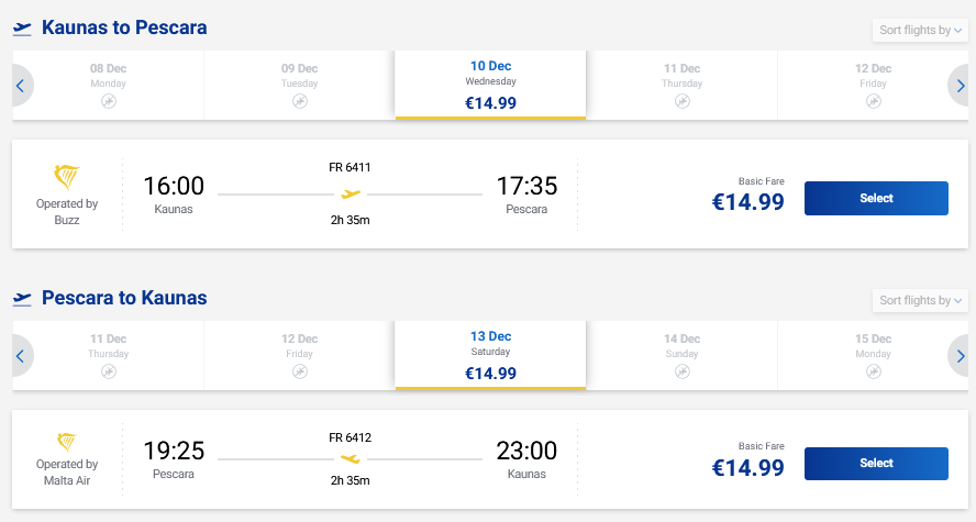 Kalėdų mugės skrydžiai į Peskarą, Italiją tiesiogiai iš Kauno ir atgal su „Ryanair“ oro linijomis.