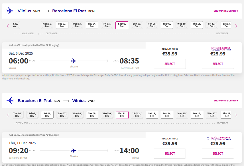 Vilnius – Barselona– Vilnius