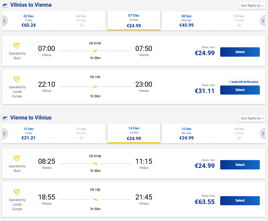 Kalėdų mugės skrydžiai į Vieną, Austriją tiesiogiai iš Vilniaus ir atgal su „Ryanair“ oro linijomis.