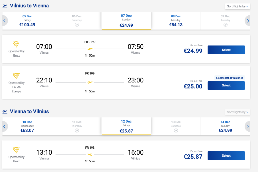 Kalėdų mugės skrydžiai į Vieną, Austriją tiesiogiai iš Vilniaus ir atgal su „Ryanair“ oro linijomis.