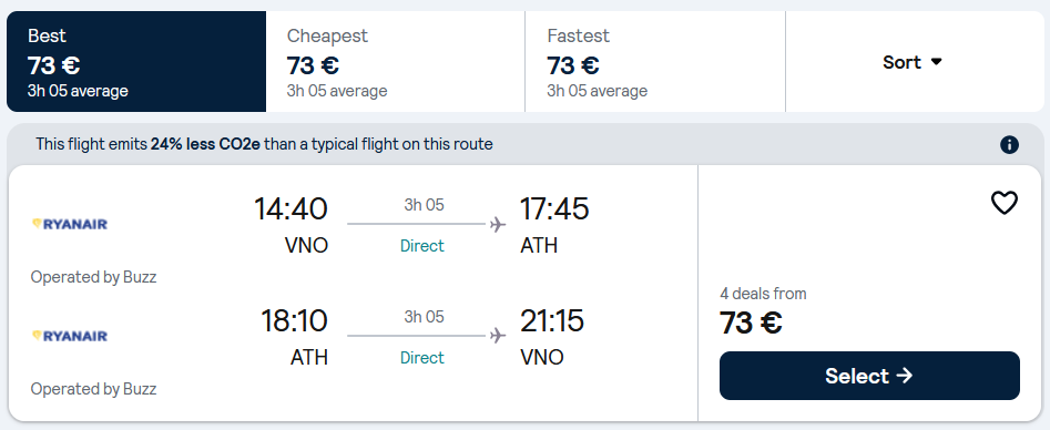 Pigūs sezono skrydžiai į Atėnus, Graikiją tiesiogiai iš Vilniaus ir atgal su „Ryanair“ oro linijomis.