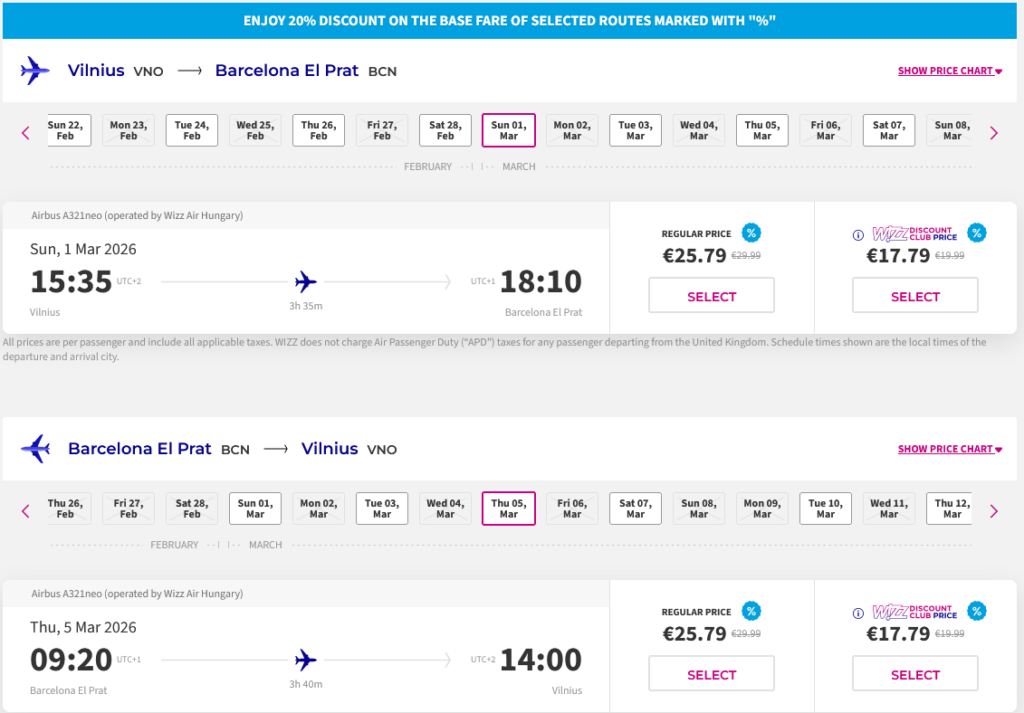Vilnius – Barselona – Vilnius