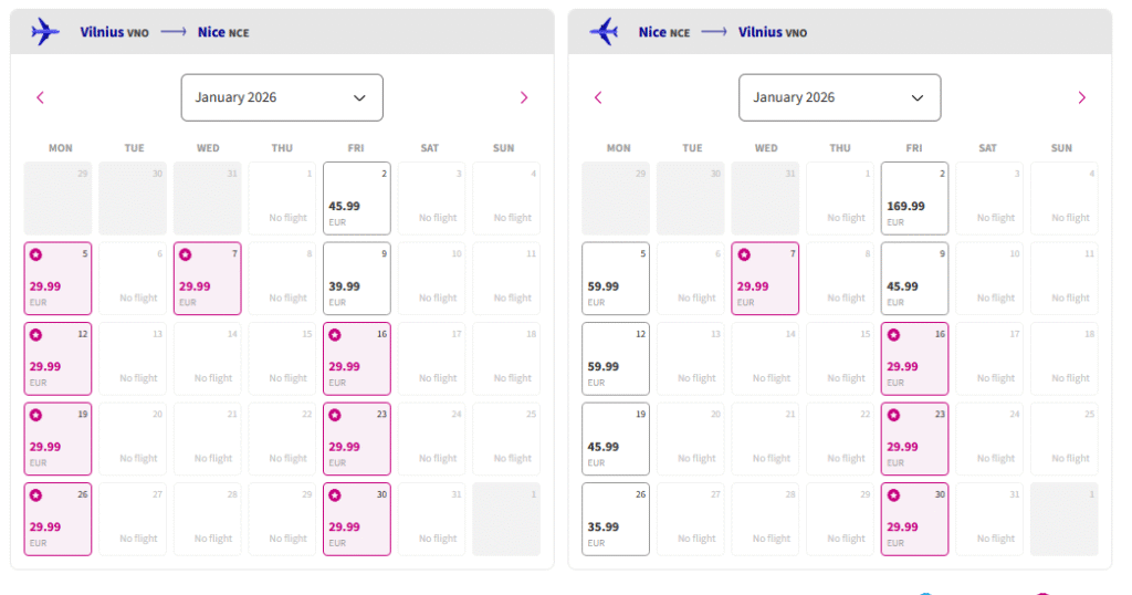 Pigūs skrydžiai į Nicą, Prancūziją tiesiogiai iš Vilniaus ir atgal su „Wizzair“ oro linijomis.