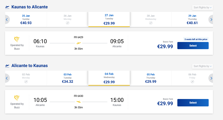 Pigūs skrydžiai į Alikantę, Ispaniją tiesiogiai iš Kauno ir atgal su „Ryanair“ oro linijomis.