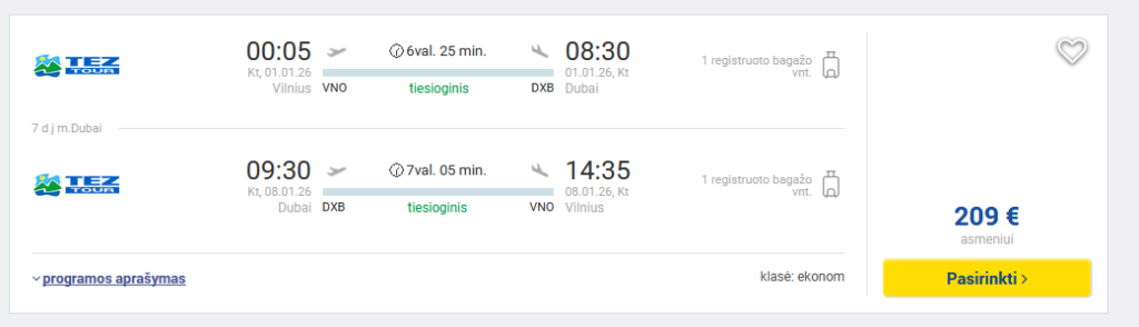 Į bilieto kainą įskaičiuotas registruotas bagažas.