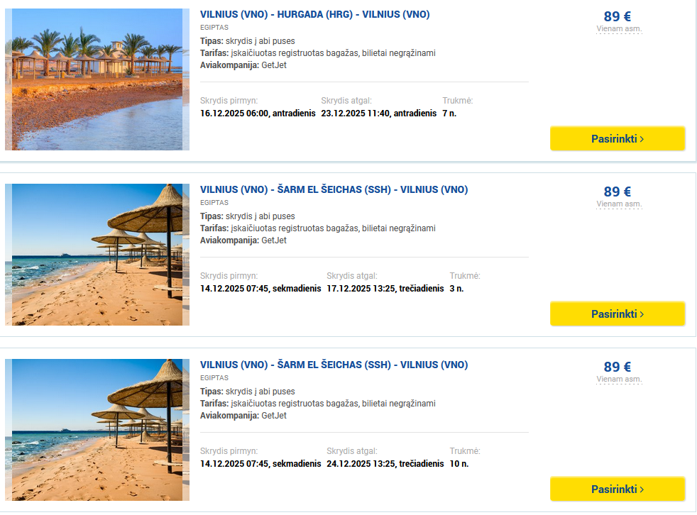 Vilnius – Šarm el Šeichas – Vilnius