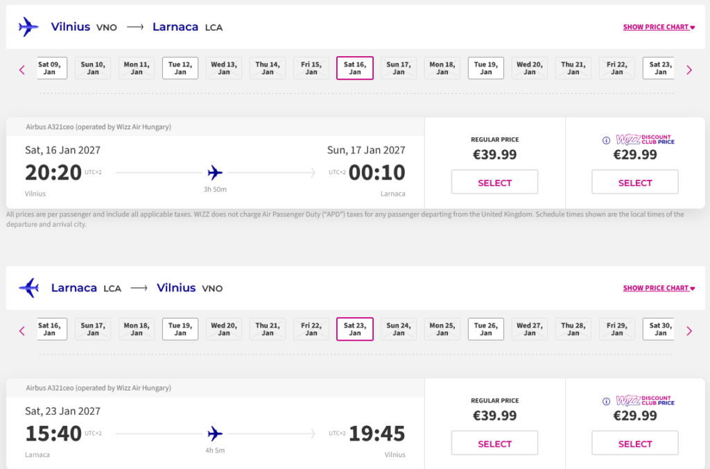 Pigūs skrydžiai į Larnaką, Kiprą tiesiogiai iš Vilniaus ir atgal su „Wizzair“ oro linijomis.
