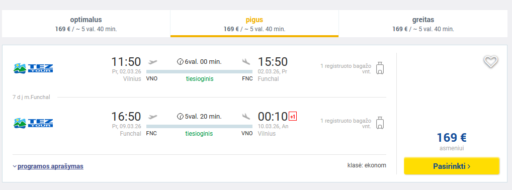 Labai pigūs tiesioginiai skrydžiai į Madeirą iš Vilniaus ir atgal su „Teztour“ bei registruotu bagažu.