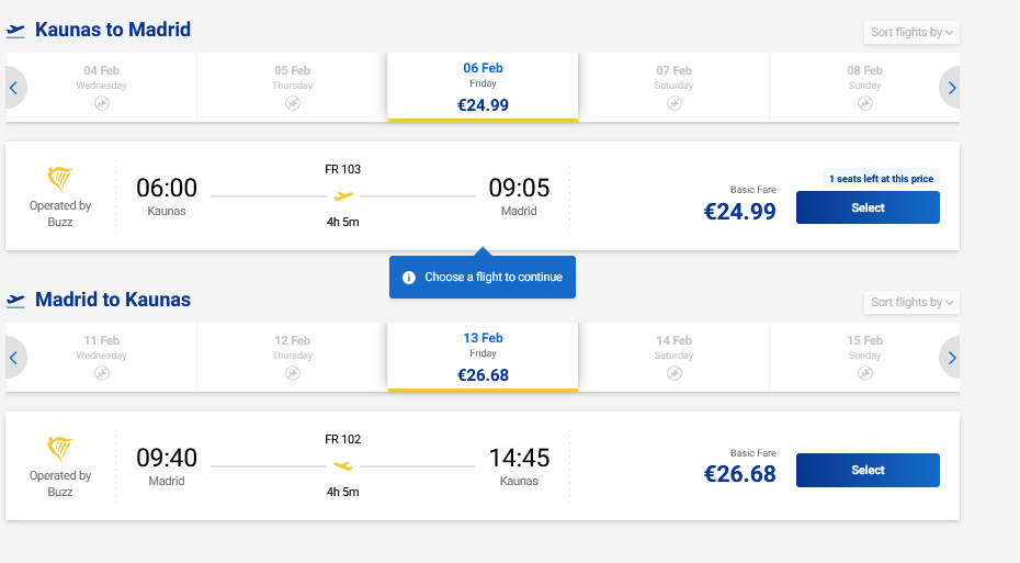 Pigūs skrydžiai į Madridą, Ispaniją tiesiogiai iš Kauno ir atgal su „Ryanair“ oro linijomis.