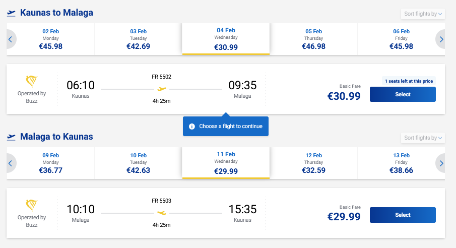 Labai pigūs skrydžiai į Malagą, Ispaniją tiesiogiai iš Kauno ir atgal su „Ryanair“ oro linijomis.