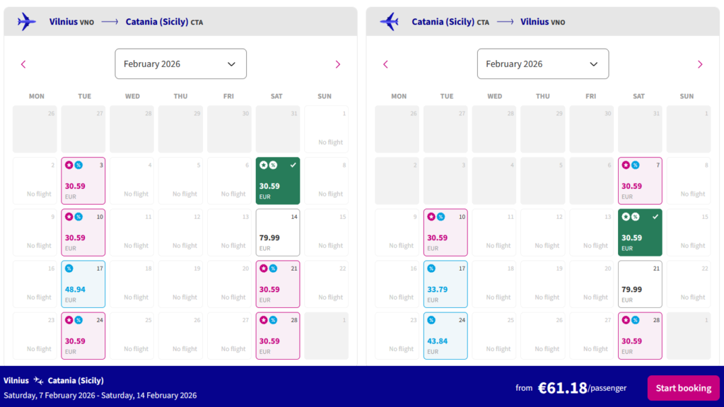 Pigūs skrydžiai į Kataniją, Siciliją tiesiogiai iš Vilniaus ir atgal su „Wizzair“ oro linijomis.