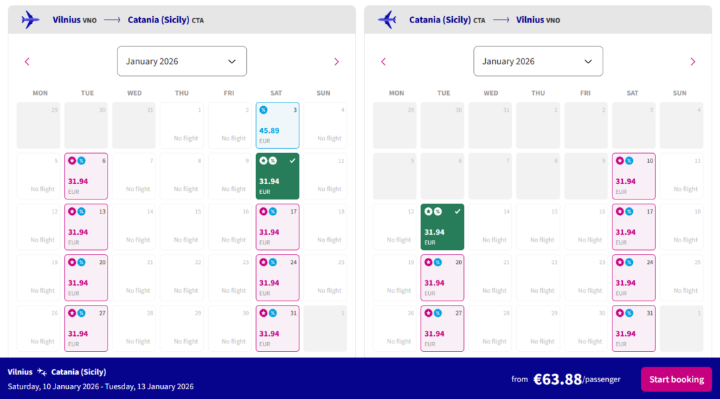 Pigūs skrydžiai į Kataniją, Siciliją tiesiogiai iš Vilniaus ir atgal su „Wizzair“ oro linijomis.