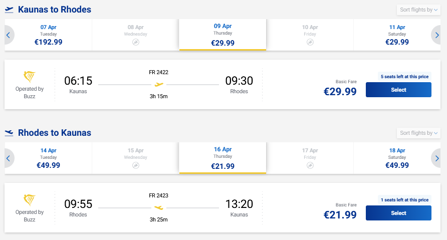 Pigūs paskutinės minutės skrydžiai į Rodo salą tiesiogiai iš Kauno ir atgal su „Ryanair“ oro linijomis.