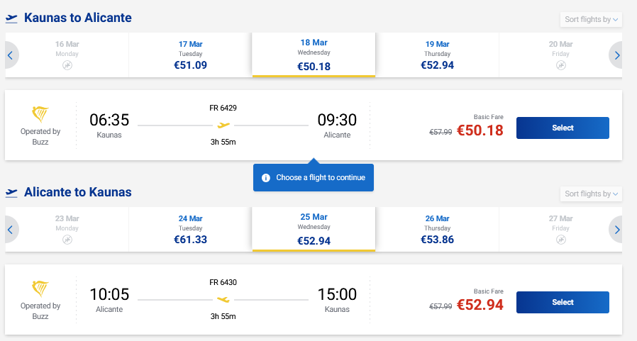 Pavasario skrydžiai į Alikantę, Ispaniją tiesiogiai iš Kauno ir atgal su „Ryanair“ oro linijomis.