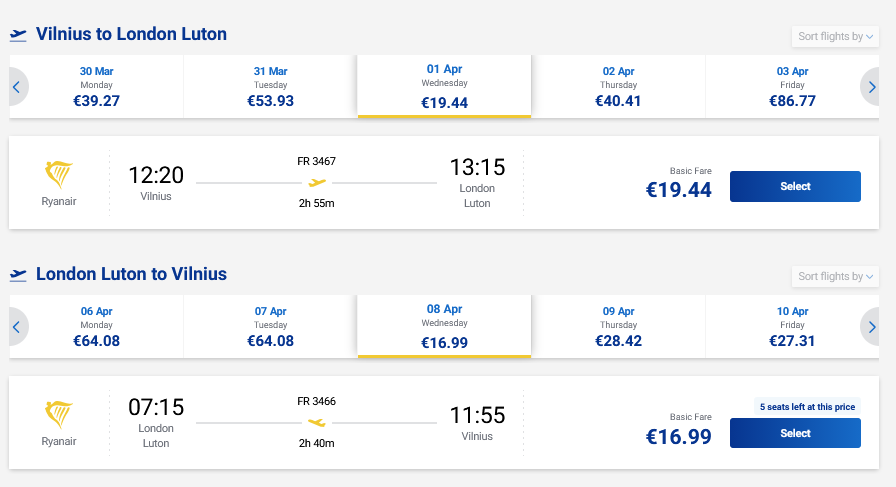Pigūs skrydžiai į Londoną, JK tiesiogiai iš Vilniaus ir atgal su „Ryanair“ oro linijomis.