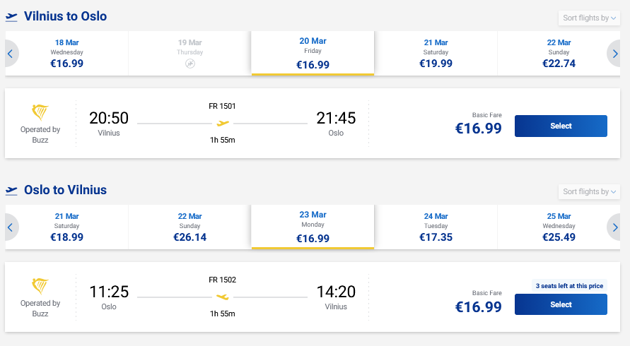 Savaitgalio skrydžiai į Oslą, Norvegiją tiesiogiai iš Vilniaus ir atgal su „Ryanair“ oro linijomis.