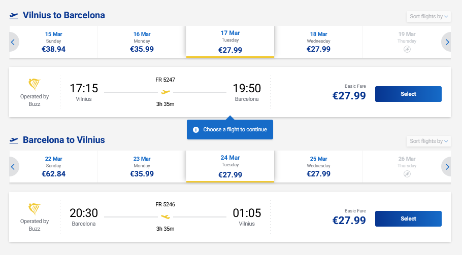 Pavasario skrydžiai į Barseloną, Ispaniją tiesiogiai iš Vilniaus ir atgal su „Ryanair“ oro linijomis.
