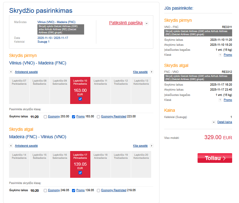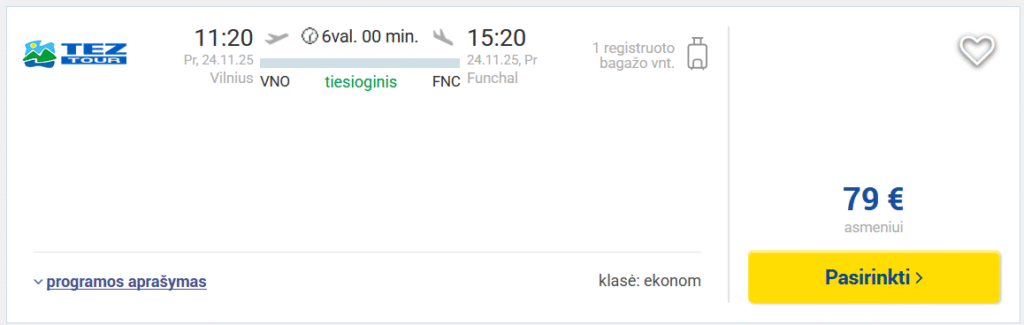 Pigūs skrydžiai į Madeirą iš Vilniaus ir atgal.