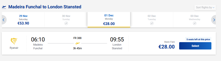 Madeira – Londonas: Bilietai