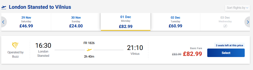Londonas – Vilnius: Bilietai