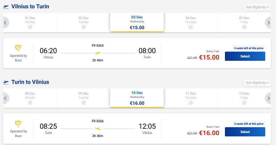 Pigūs Kalėdinės mugės skrydžiai į Turiną, Italiją tiesiogiai iš Vilniaus ir atgal su „Ryanair“ oro linijomis.