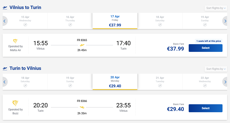 Savaitgalio skrydžiai į Turiną, Italiją tiesiogiai iš Vilniaus ir atgal su „Ryanair“ oro linijomis.