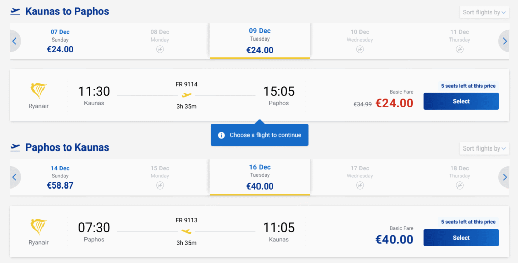 Pigūs skrydžiai į Pafosą, Kiprą tiesiogiai iš Kauno ir atgal su „Ryanair“ oro linijomis.