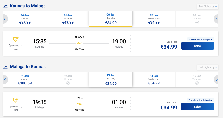 Pigūs skrydžiai į Malagą, Ispaniją tiesiogiai iš Kauno ir atgal su „Ryanair“ oro linijomis.