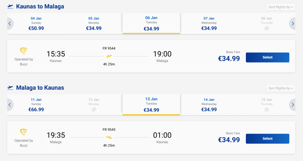 Pigūs skrydžiai į Malagą, Ispaniją tiesiogiai iš Kauno ir atgal su „Ryanair“ oro linijomis.
