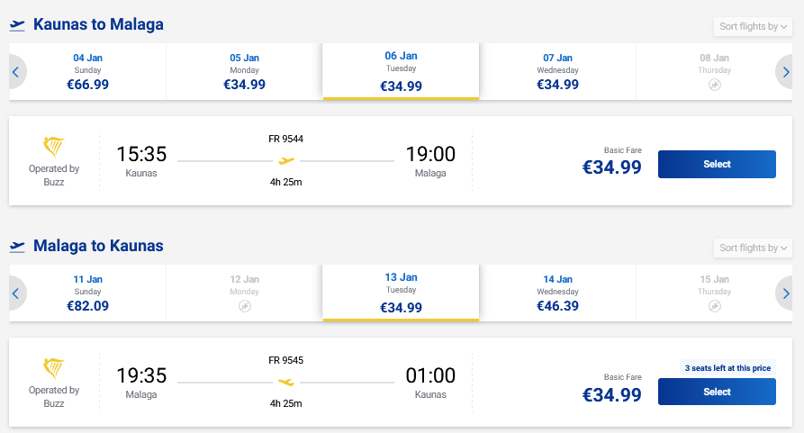 Pigūs skrydžiai į Malagą, Ispaniją tiesiogiai iš Kauno ir atgal su „Ryanair“ oro linijomis.