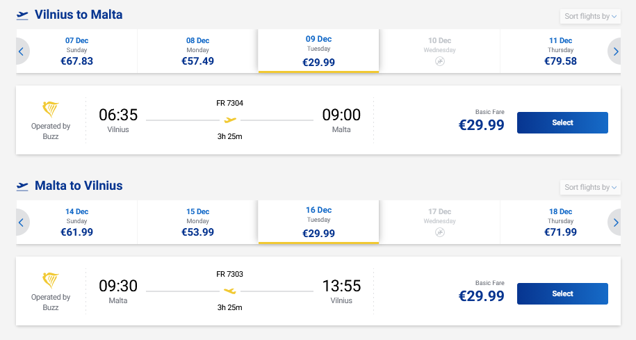 Pigūs skrydžiai į Maltą tiesiogiai iš Vilniaus ir atgal su „Ryanair“ oro linijomis.