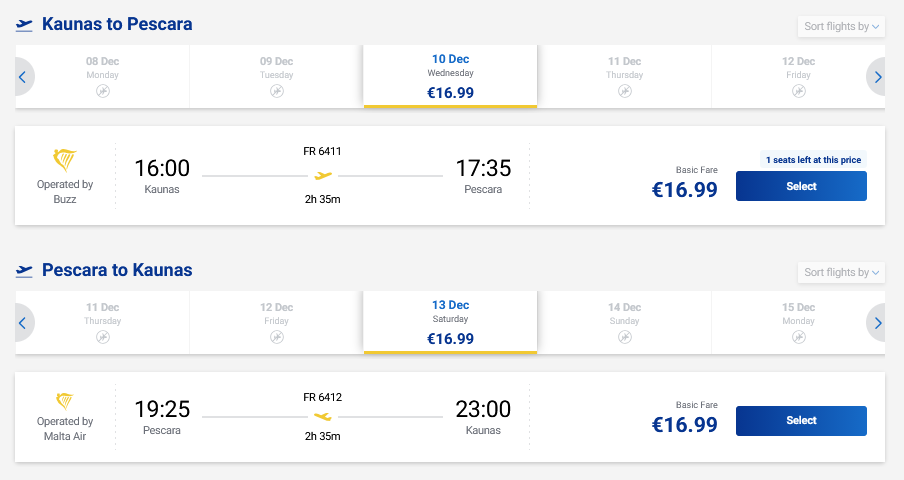 Pigūs skrydžiai į Peskarą, Italiją tiesiogiai iš Kauno ir atgal su „Ryanair“ oro linijomis.