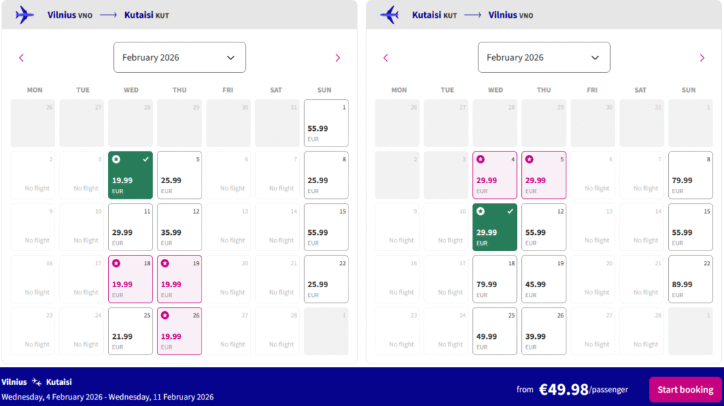 Pigūs skrydžiai į Kutaisį, Sakartvelą tiesiogiai iš Vilniaus ir atgal su „Wizzair“ oro linijomis.