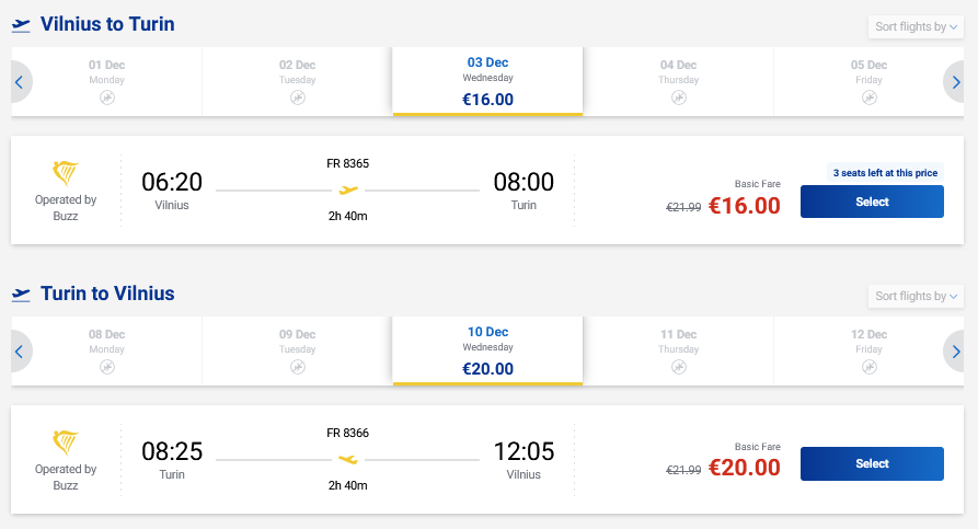 Pigūs skrydžiai į Turiną, Italiją tiesiogiai iš Vilniaus ir atgal su „Ryanair“ oro linijomis.