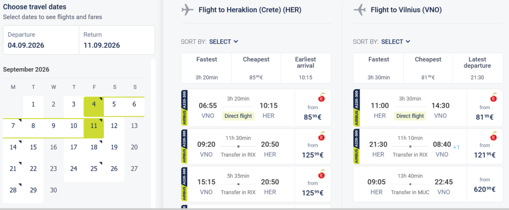 Pigūs skrydžiai į Kretą, Graikiją tiesiogiai iš Vilniaus ir atgal su „AirBaltic“ oro linijomis.