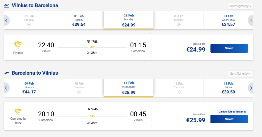 Vilnius – Barselona – Vilnius