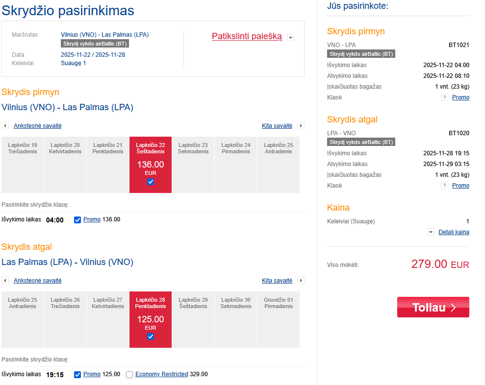Vilnius – Gran Kanarija – Vilnius