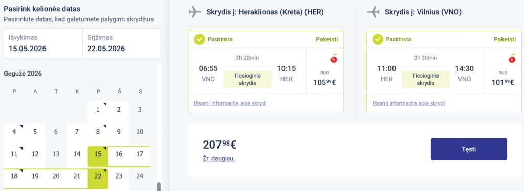 Pigūs tiesioginiai skrydžiai į Kretą iš Vilniaus į abi puses tik €208